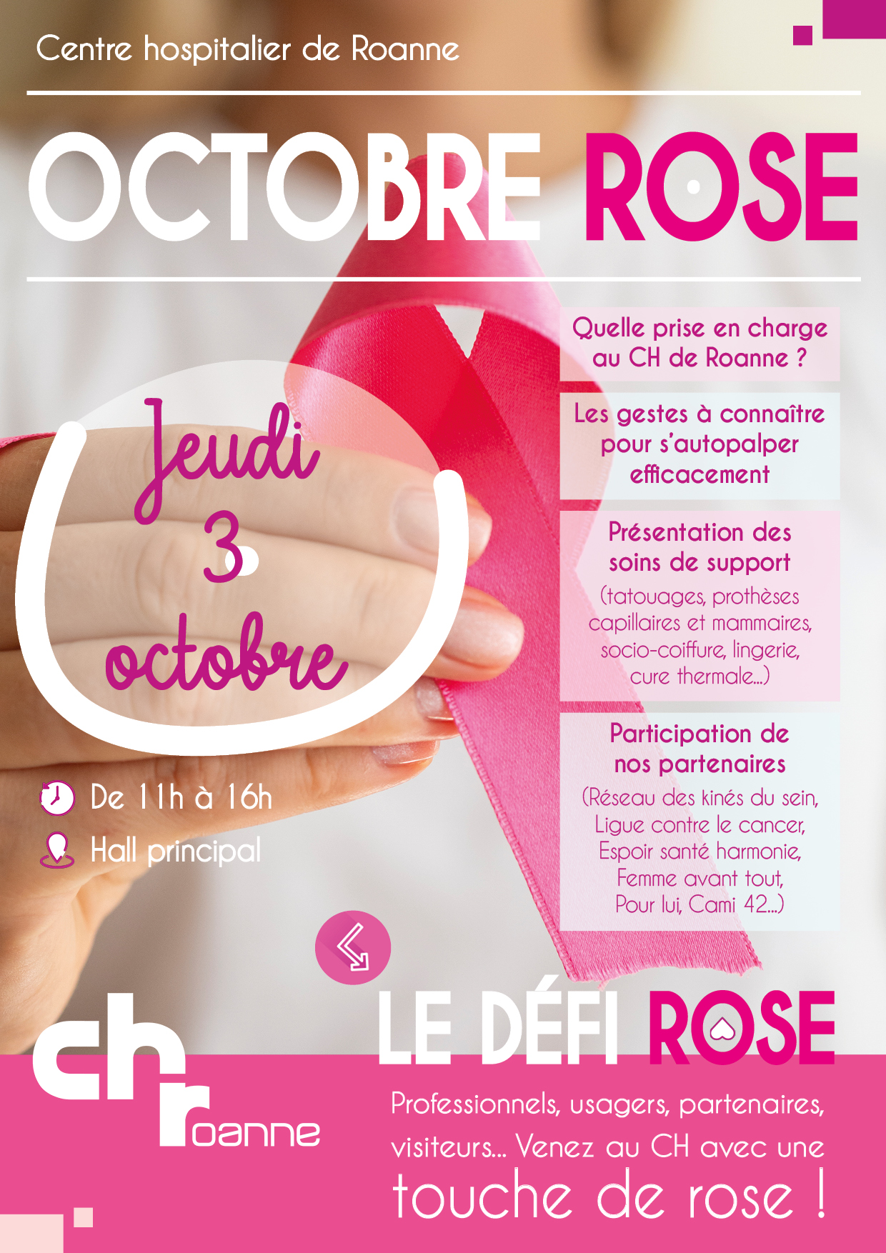Professionnels, usagers, partenaires, visiteurs... Venez au CH ce jour-là avec une touche de Rose !
