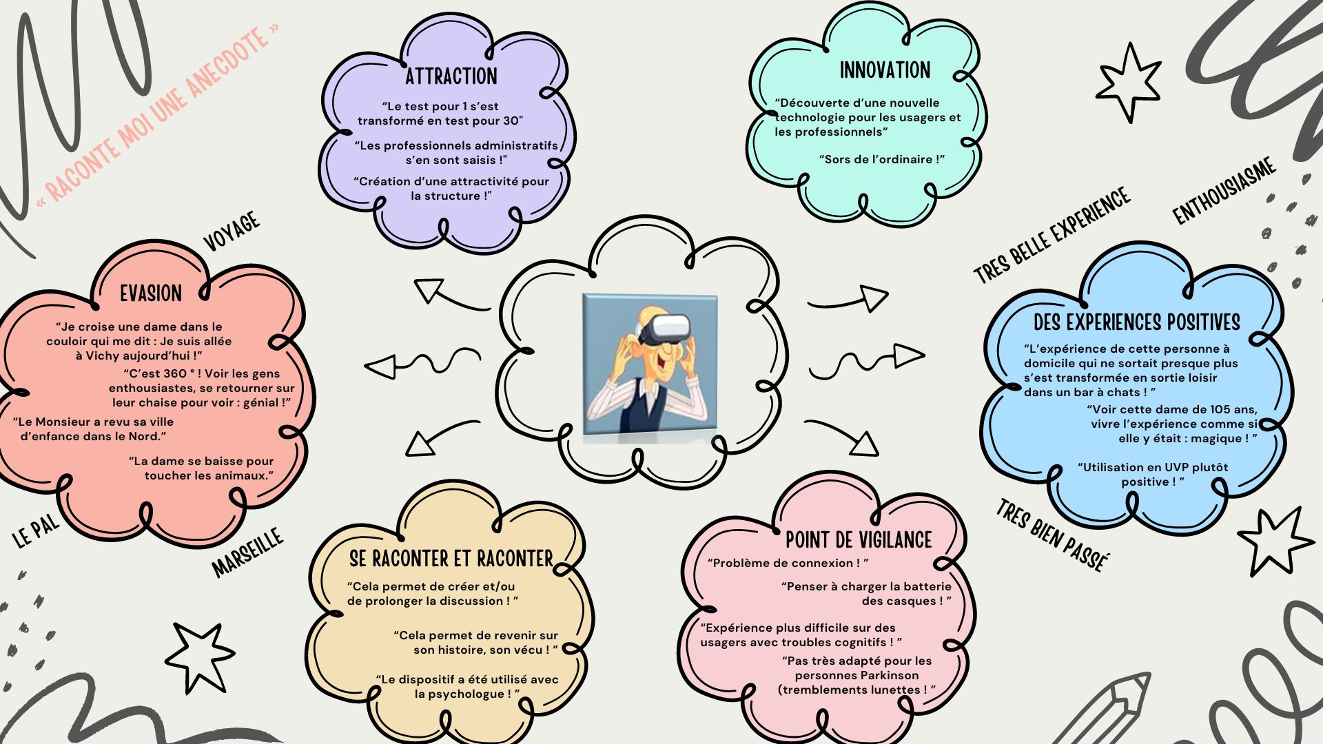 Entre juin 2023 et avril 2024, 7 structures sont impliquées dans la démarche de réalité virtuelle au service de nos seniors. Un bilan final a été réalisé en mai 2024.