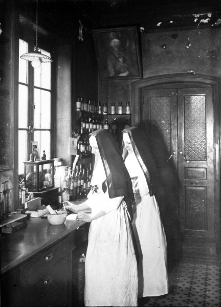Les bâtiments comptent alors une maison principale composée de cinq « salles de malades », comportant de 3 à 25 lits. L’hôpital compte en outre une pharmacie.