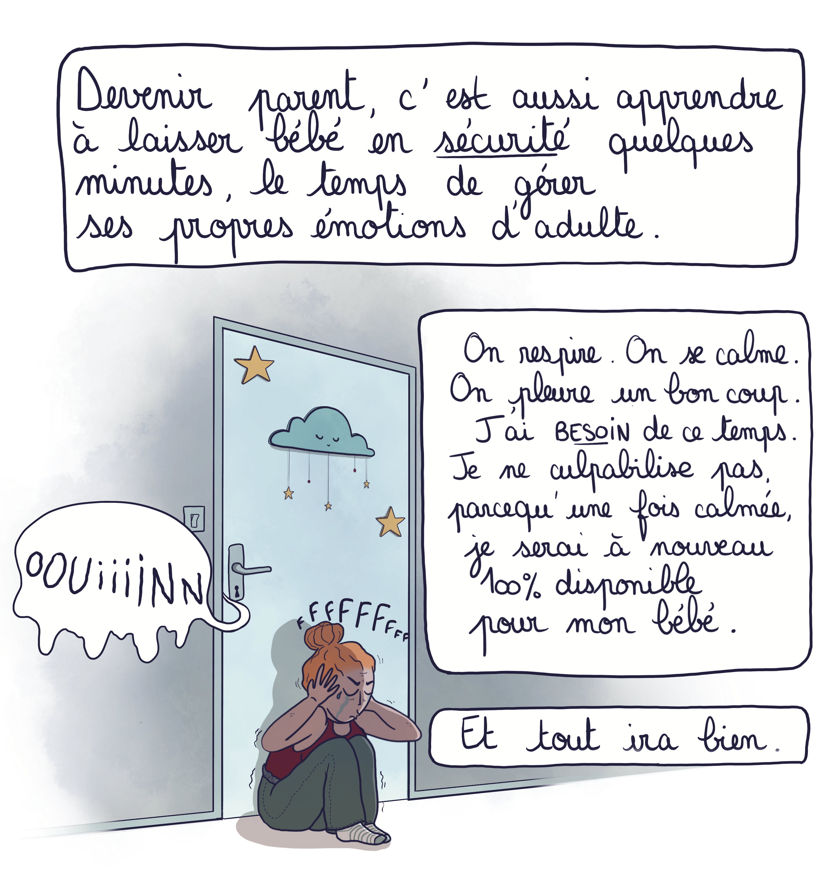 La fatigue aidant, si les pleurs deviennent insupportables, laissez votre bébé en sécurité dans son lit et allez prendre l'air après avoir passé le relais.