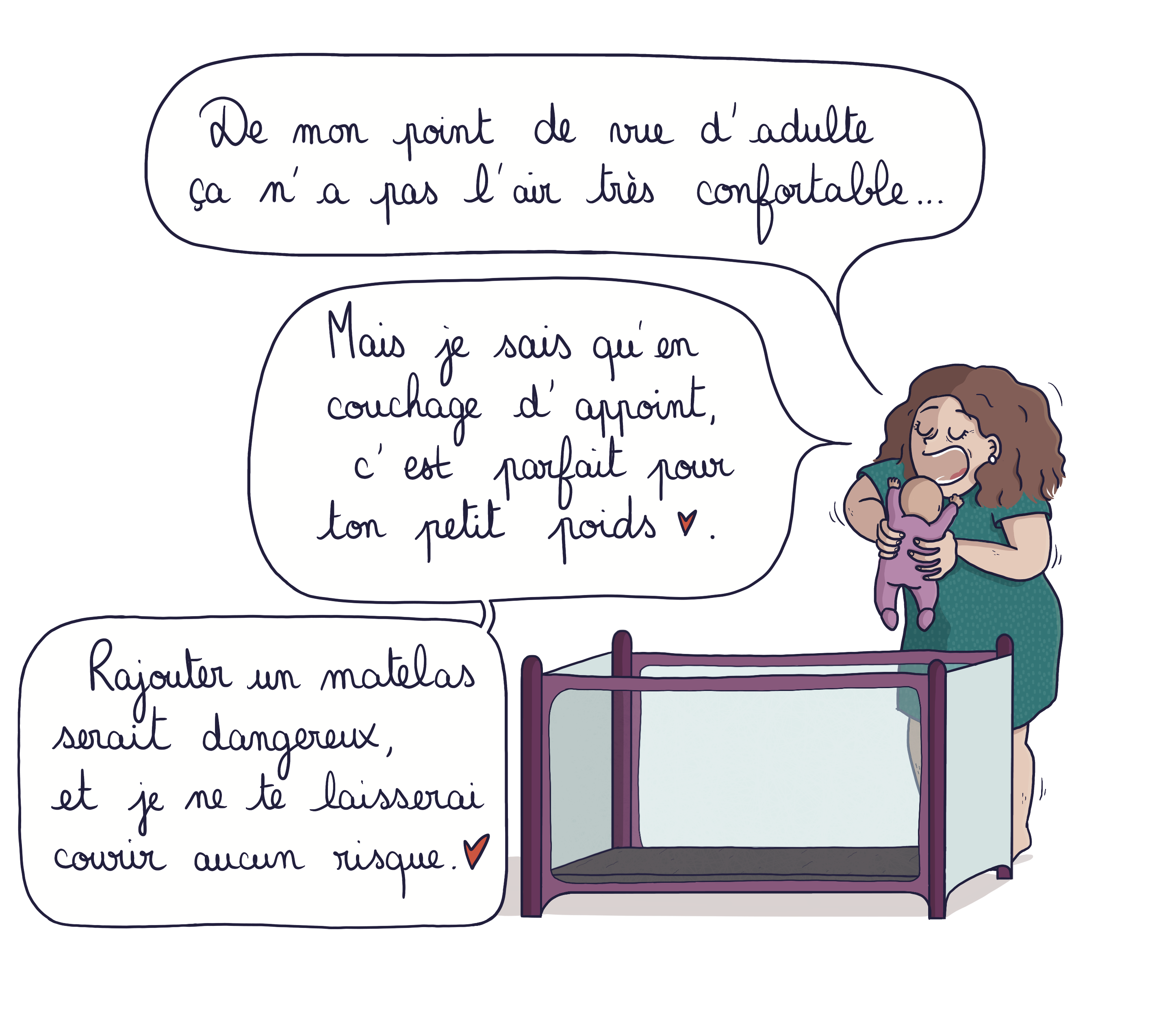- dans un lit adapté à sa taille, sur un matelas ferme