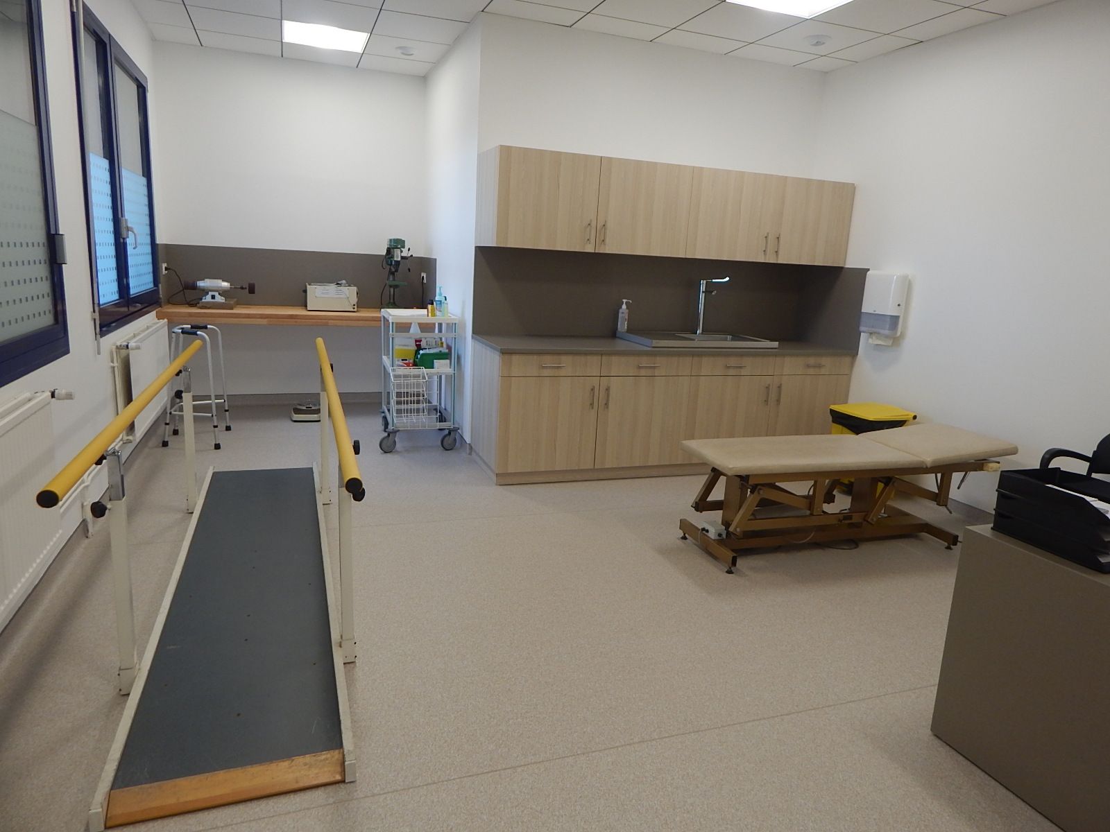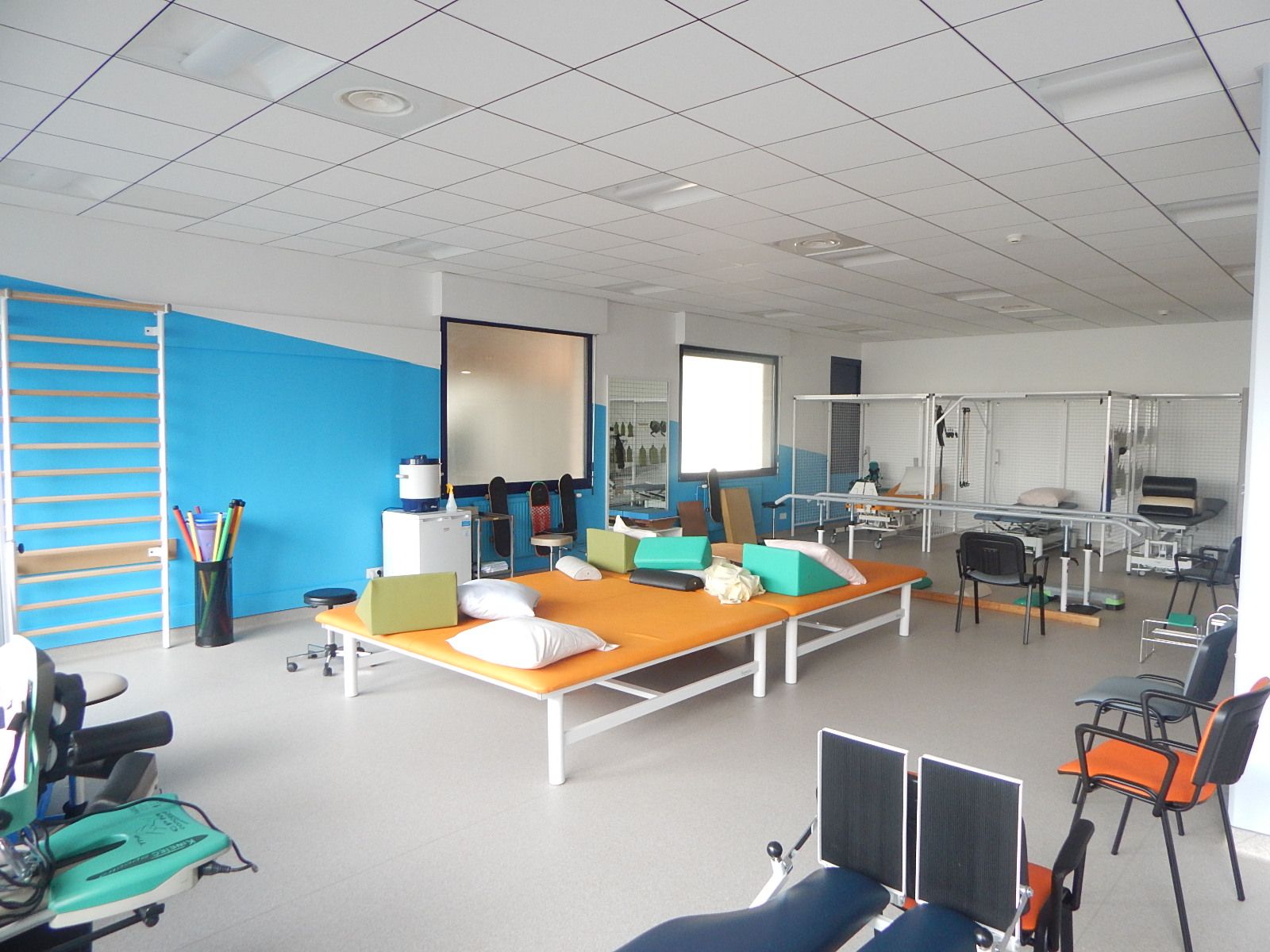 - Une partie « sèche » avec des salles pour la kinésithérapie, l’ergothérapie, l’activité physique adaptée, l’aménagement d’un patio extérieur pour le travail de la marche, ainsi qu’une salle de consultation de grand appareillage.